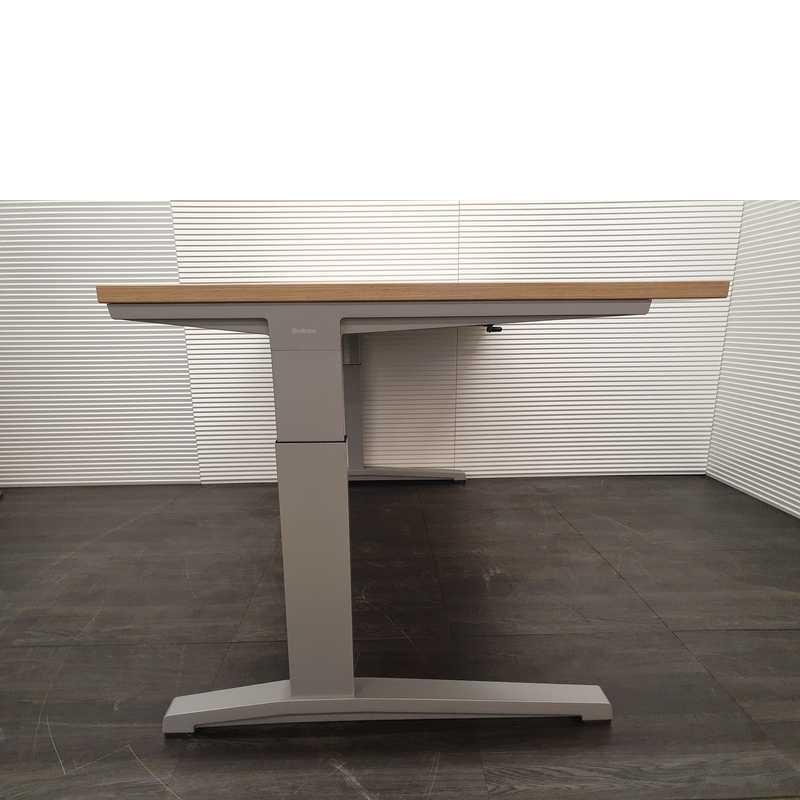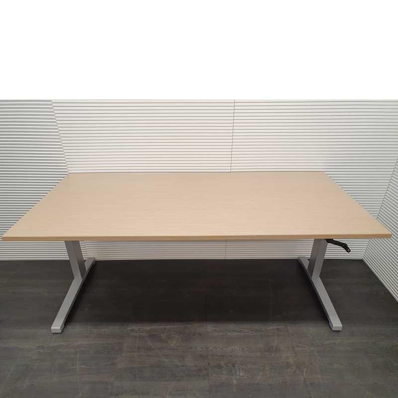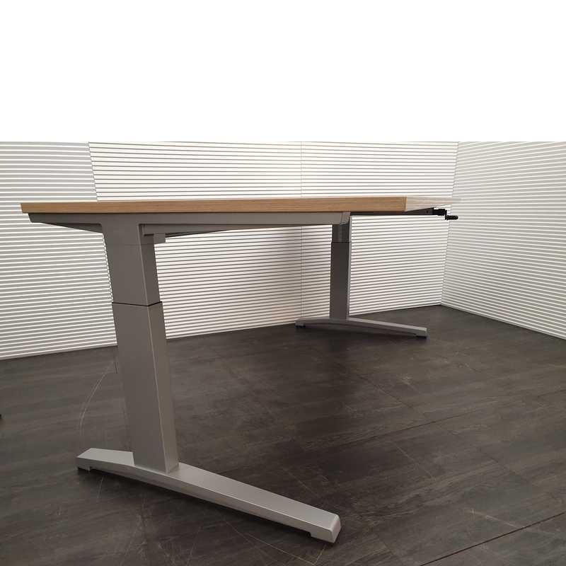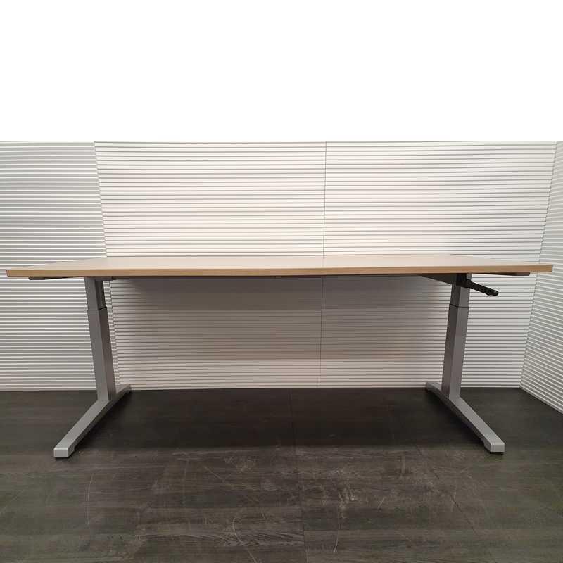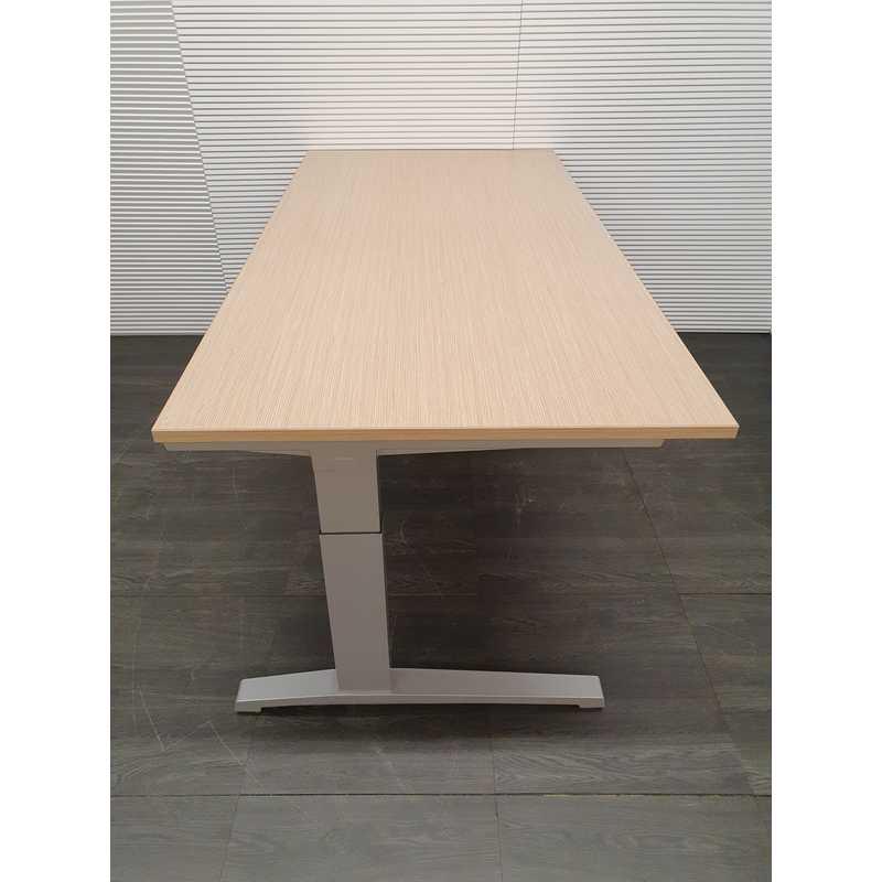 Steelcase bureau Activ B180xD90cm, licht eiken blad, mat zilvergrijs onderstel, verstelbaar met slinger