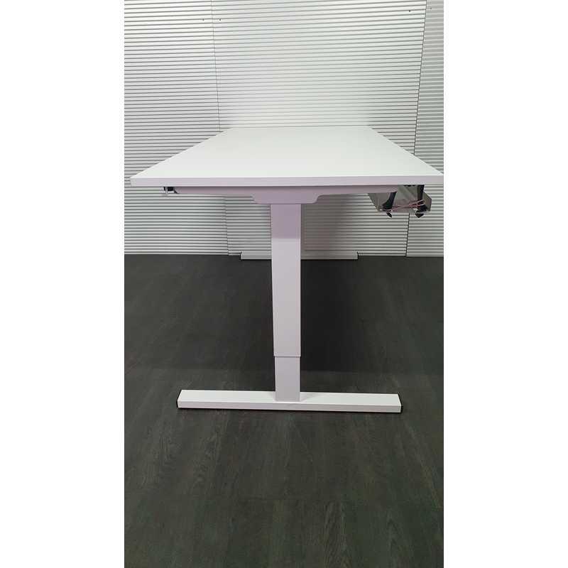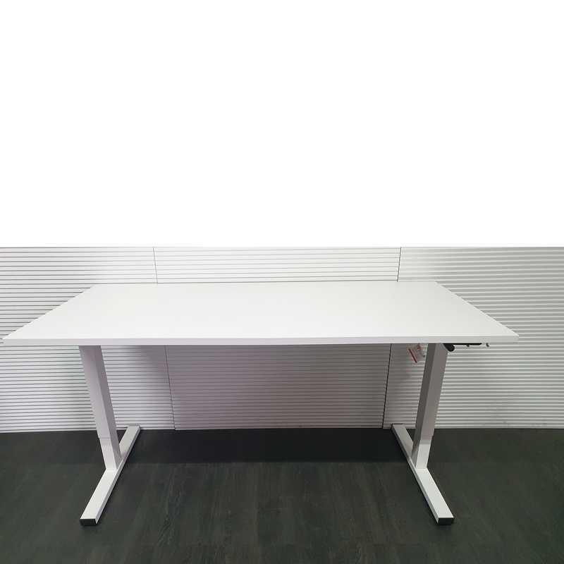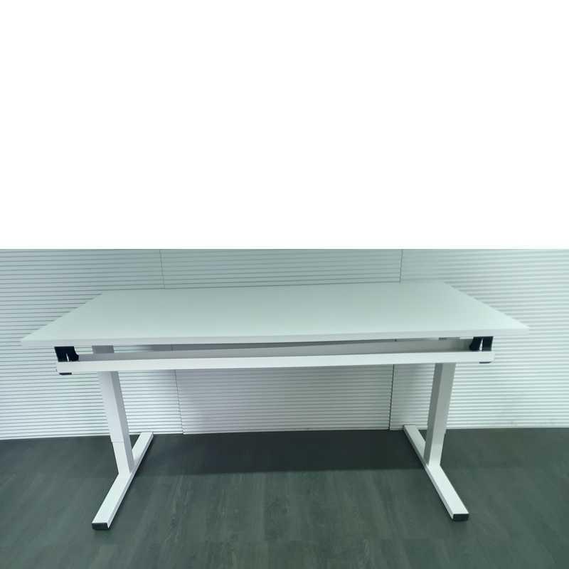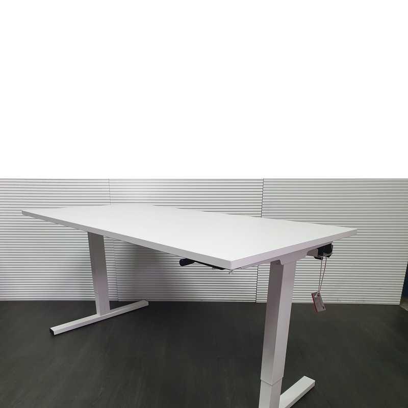 Twinform bureau, 160x80cm, wit blad, wit Tpoot, hoogte verstelbaar met slinger