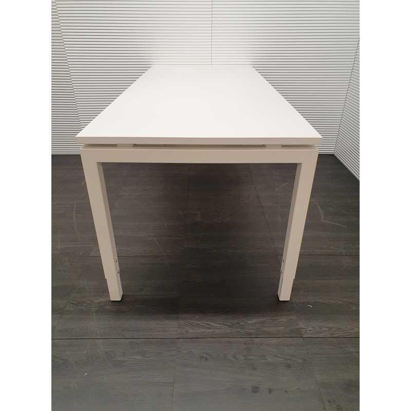 Twinform bureau,180x80cm,wit 4poot met zwevend wit blad en hoogte verstelbaar met inbus.