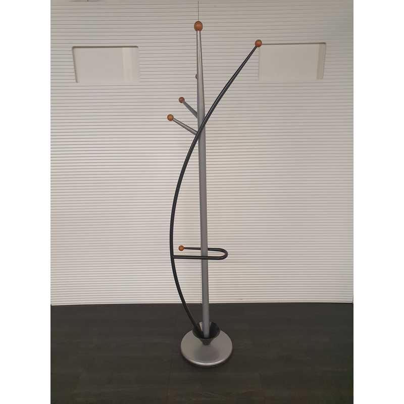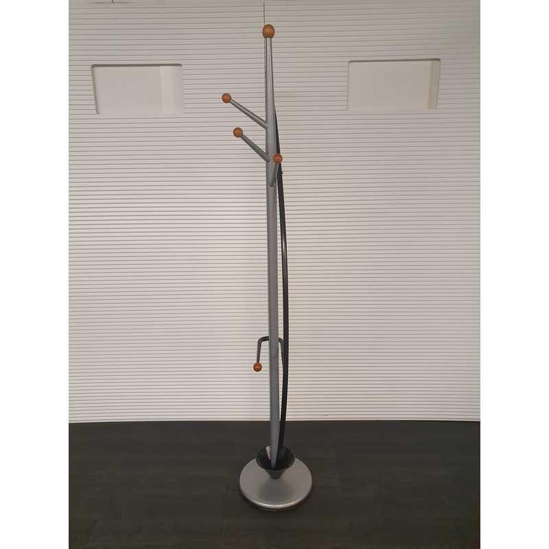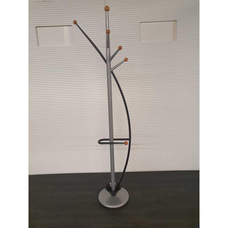 Bolkapstok met paraplubak, zwart met zilvergrijs en houten ophangbollen