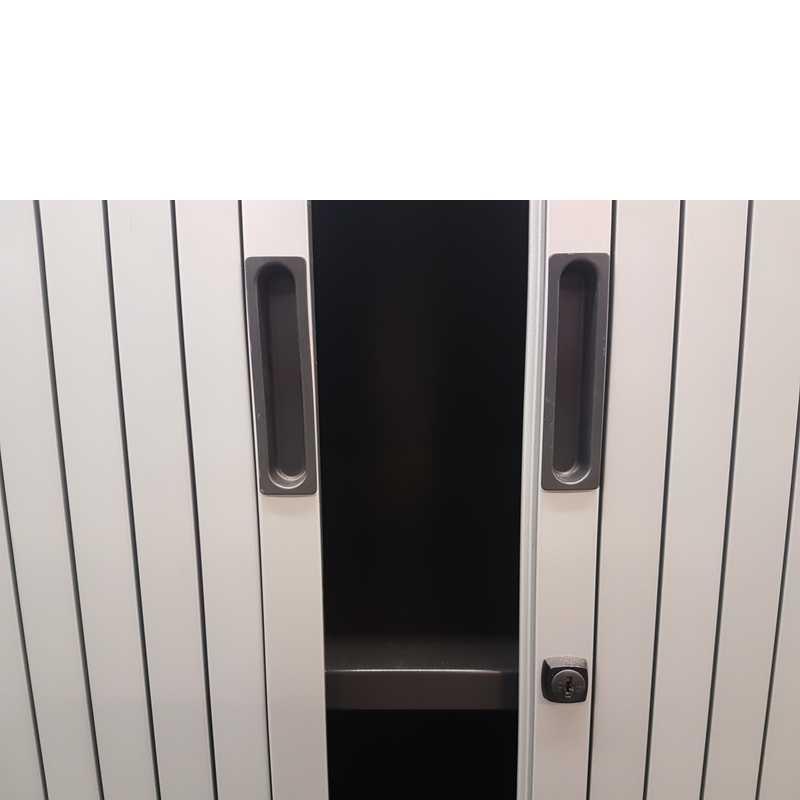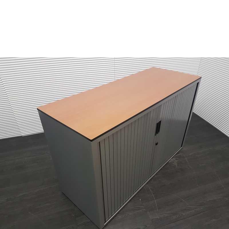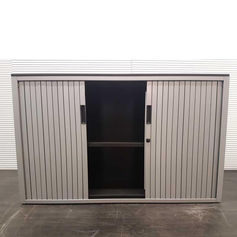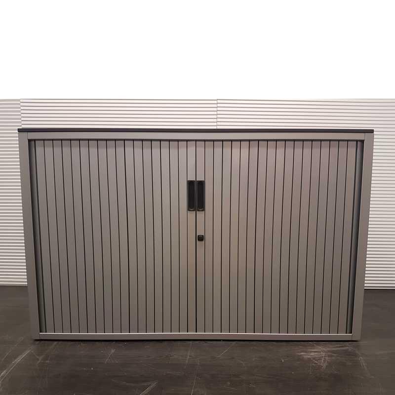 Aspa roldeurkast, H74xB120xD45cm, metalen omhuizing zilvergrijs, antraciet metalen lamel, donker of lichtbeuken topblad