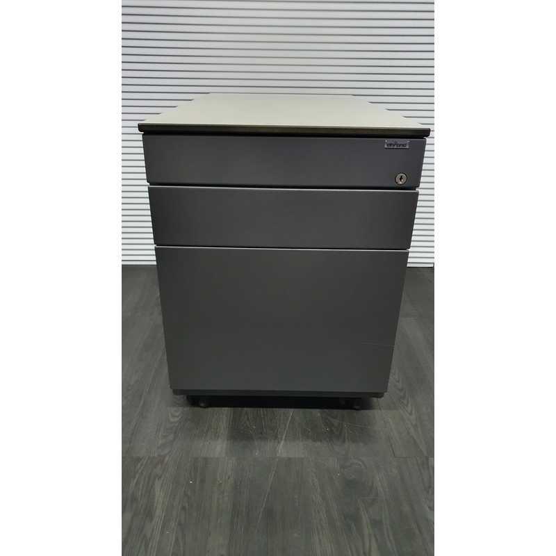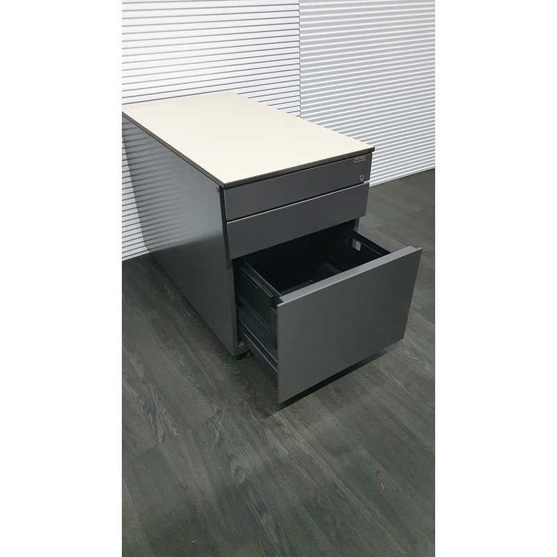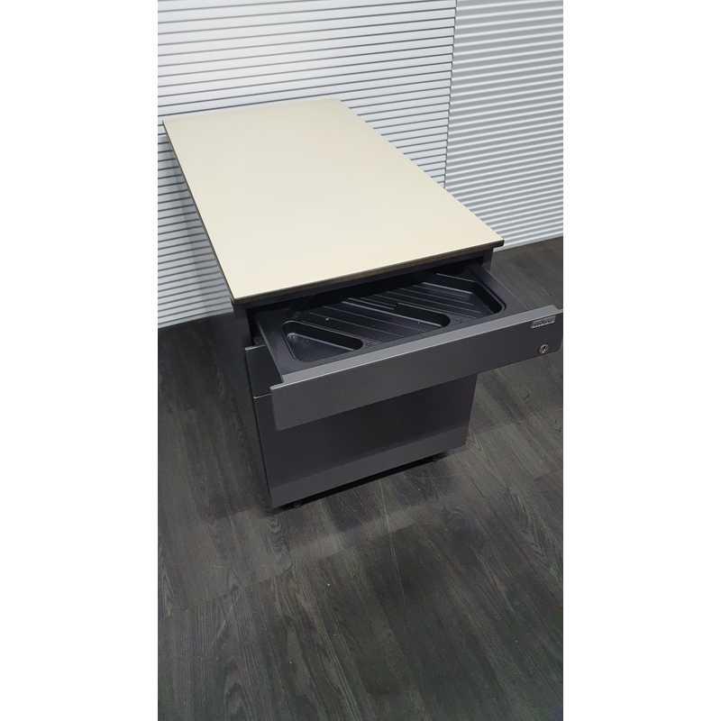 Ahrend ladenblok,donkergrijs metallic, omhuizing en front ahorn volkern topblad,3 laden