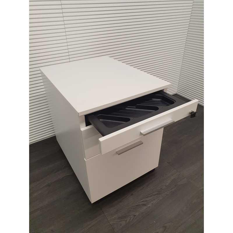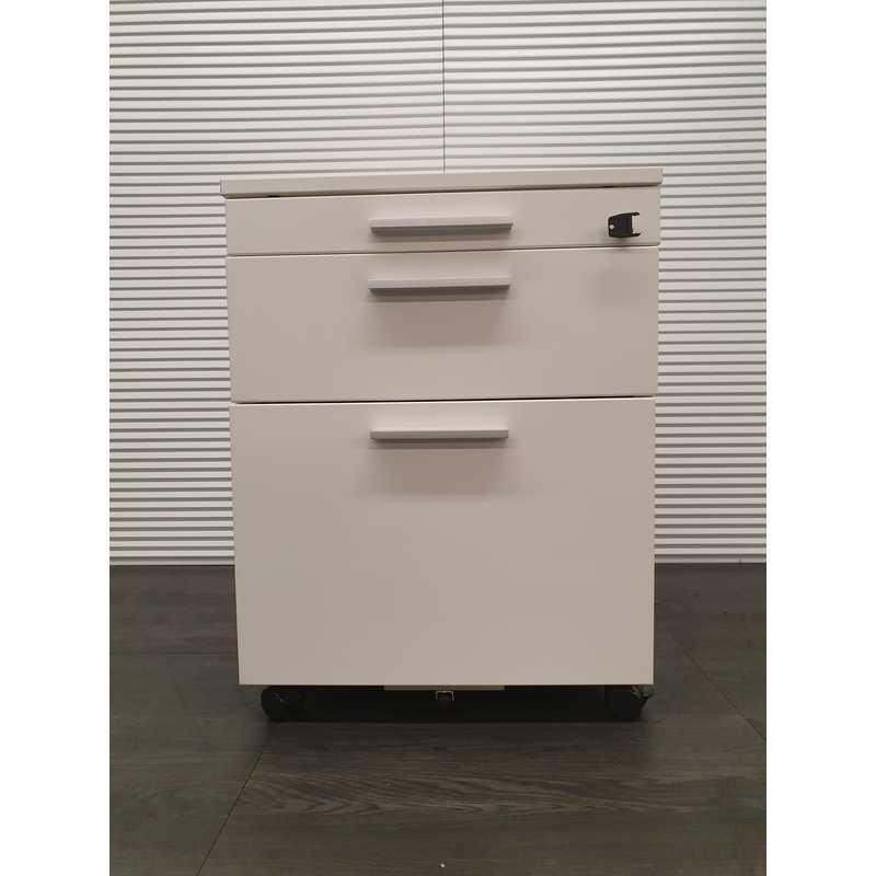 Pami ladenblok, witte metalen omhuizing, wit metalen topblad, 3 laden met aluminium grepen