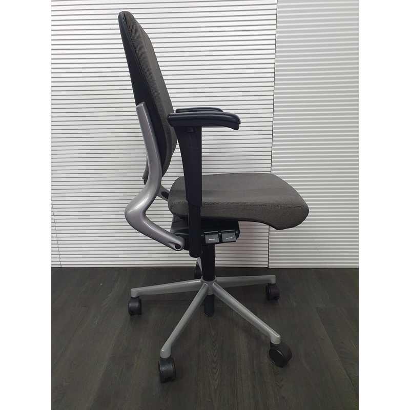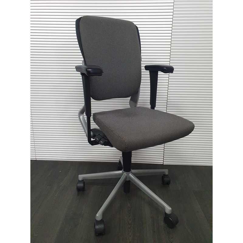 Ahrend 230 bureaustoel hoge rug, lichtgrijze stof, zilvergrijs aluminium frame en 4D soft pad armleggers