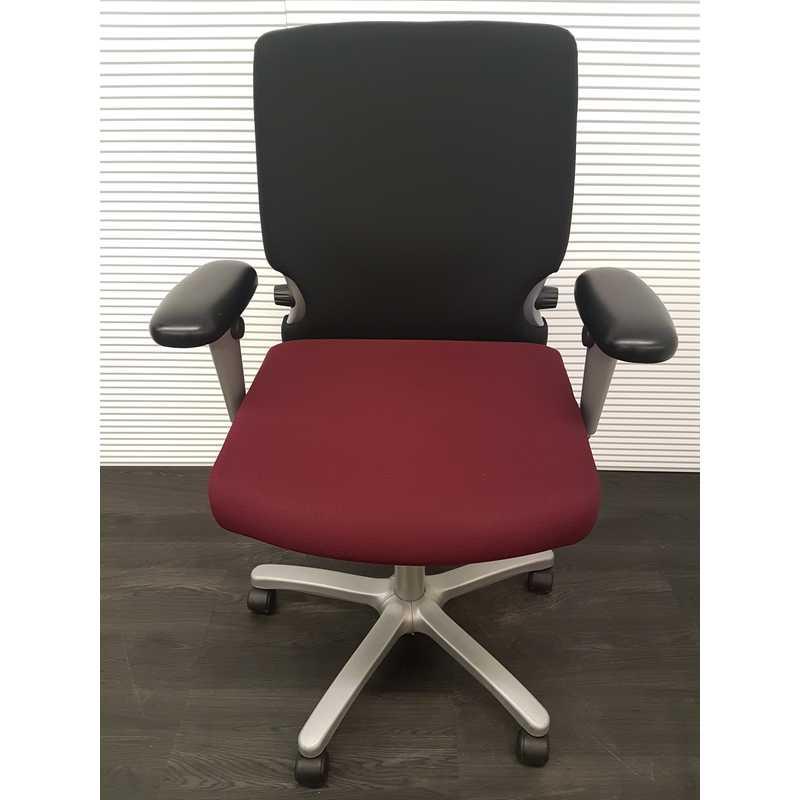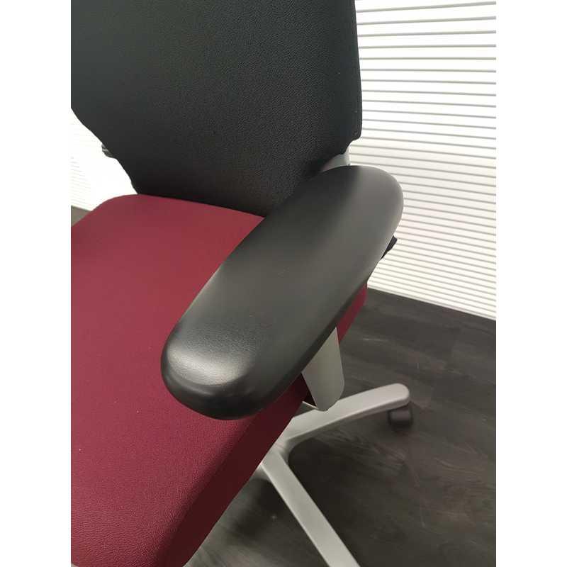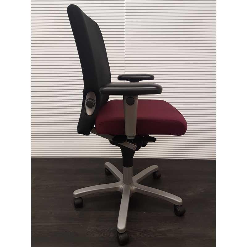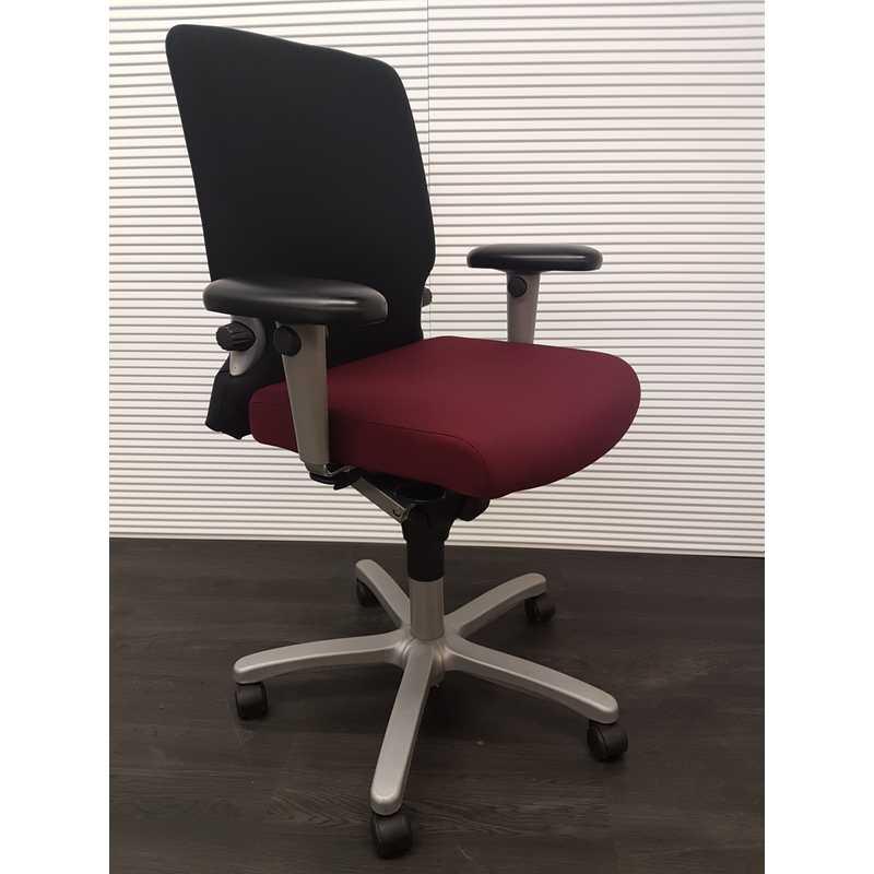 Haworth Comforto 7700 bureaustoel, zwarte rug / bordeauxrode zitting, synchroon mechaniek, lendesteun,3D softpad armleggers