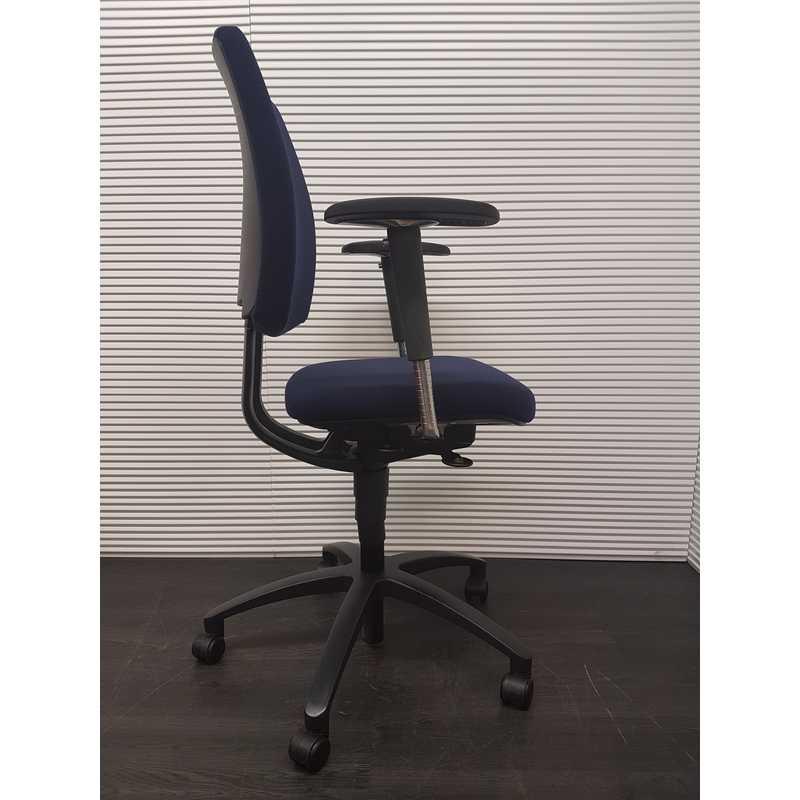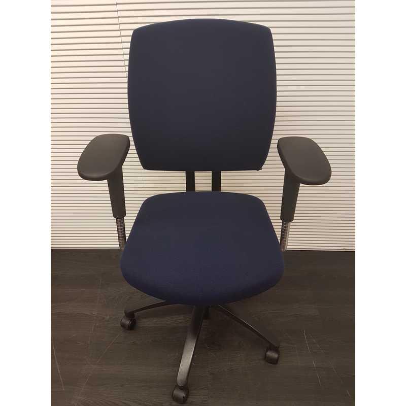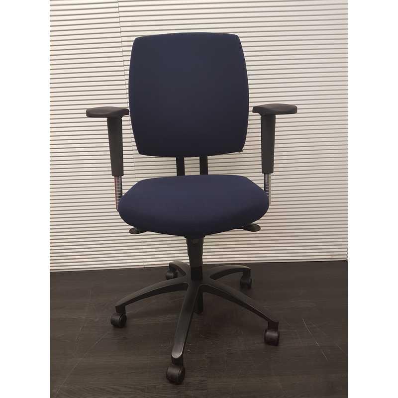 Drabert entrada bureaustoel, donkerblauwe stof, aluminium zwart voetenkruis, 4D soft pad armleggers