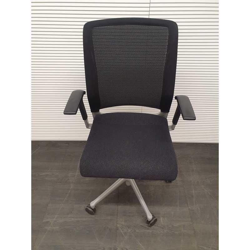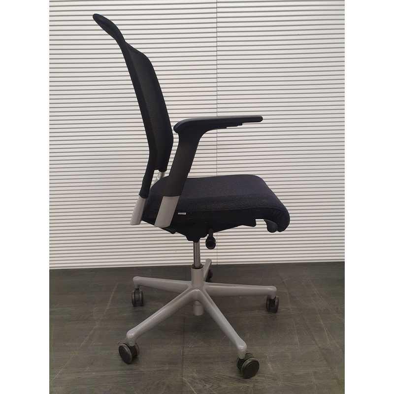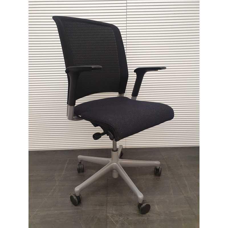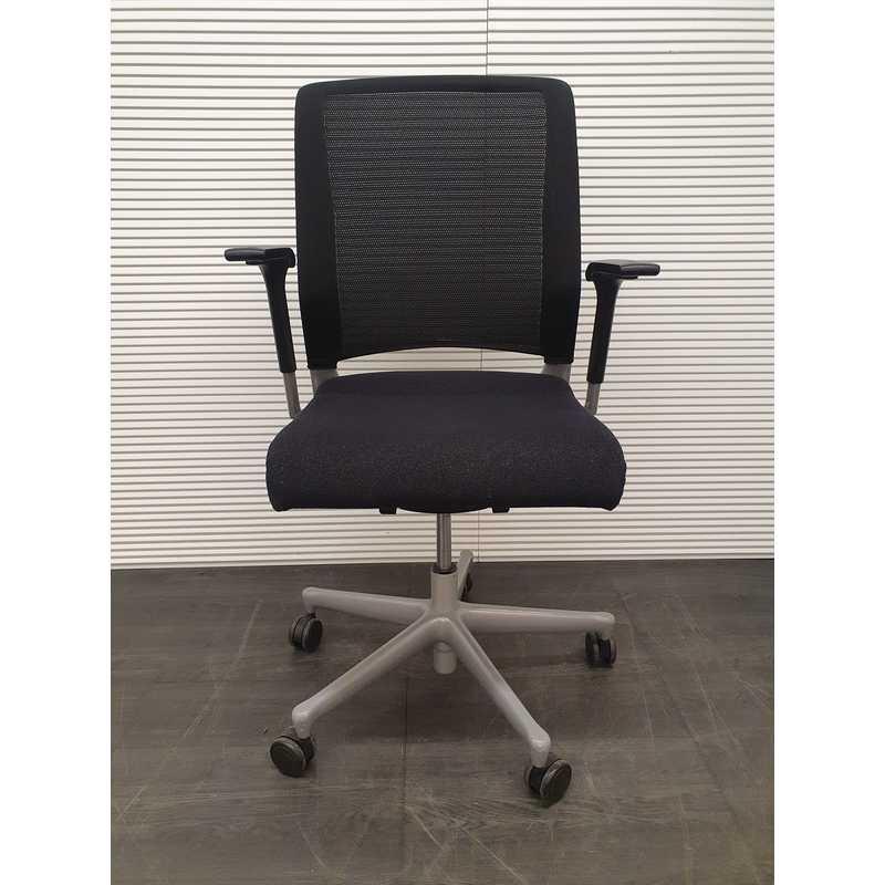 Interstuhl Genius bureaustoel, antraciete stof met zwart netwave rug, zilvergrijs voetenkruis, kunststof armleggers