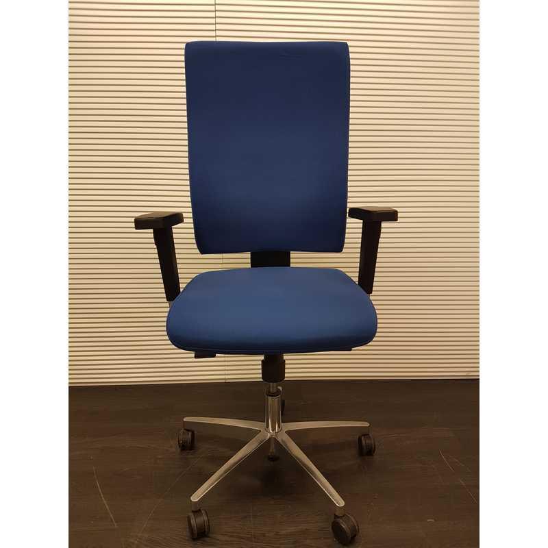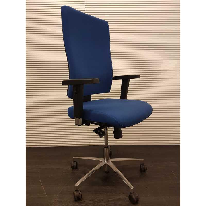 Topstar Dua bureaustoel, blauwe stof, extra lange rug, chroom voetenkruis 3D softpad armleggers