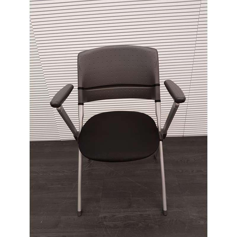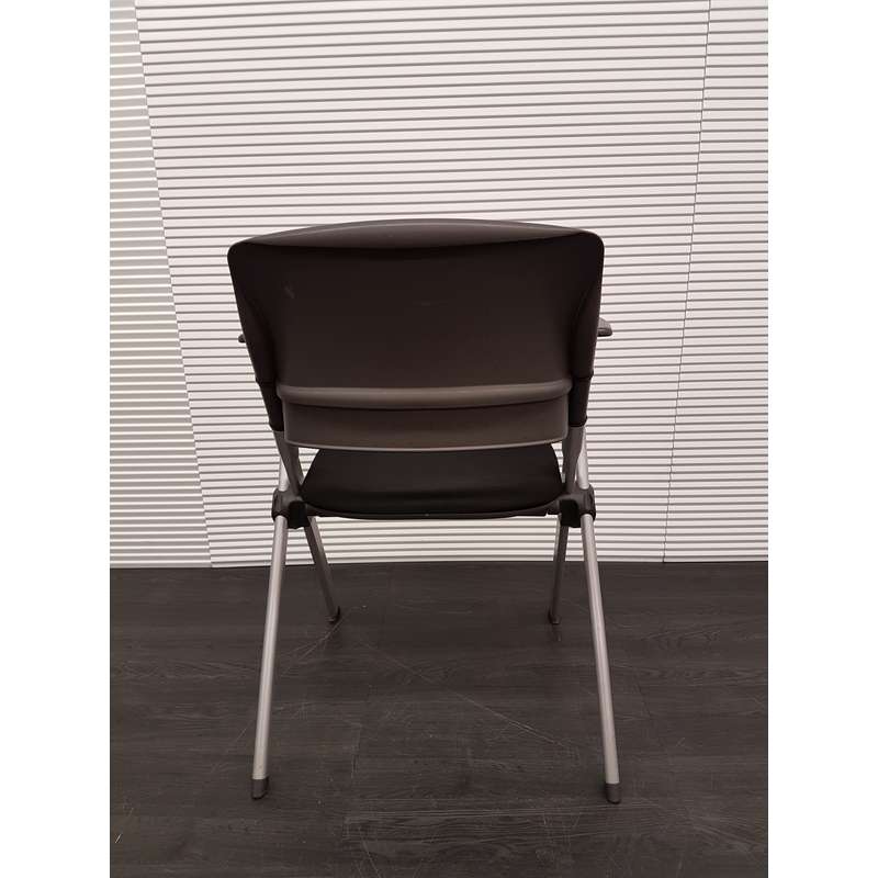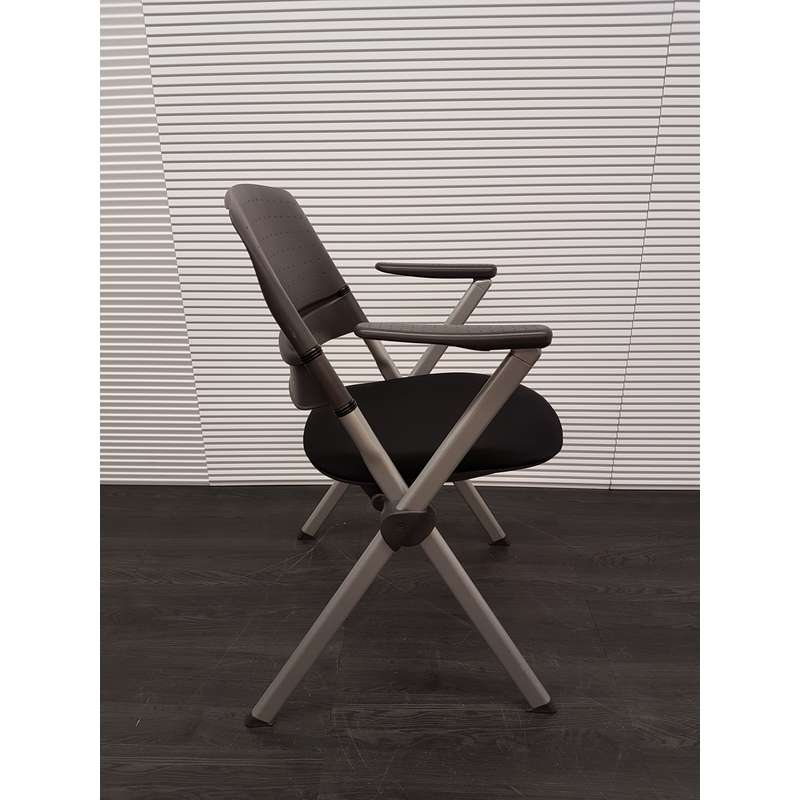 Inklapbare conferentiestoel, zwarte stof, kunststof rug en armleuning, aluminium 4poot
