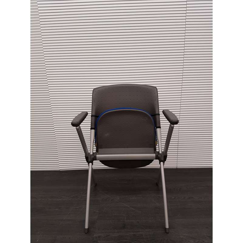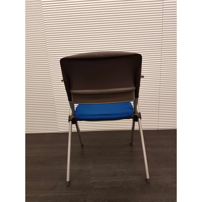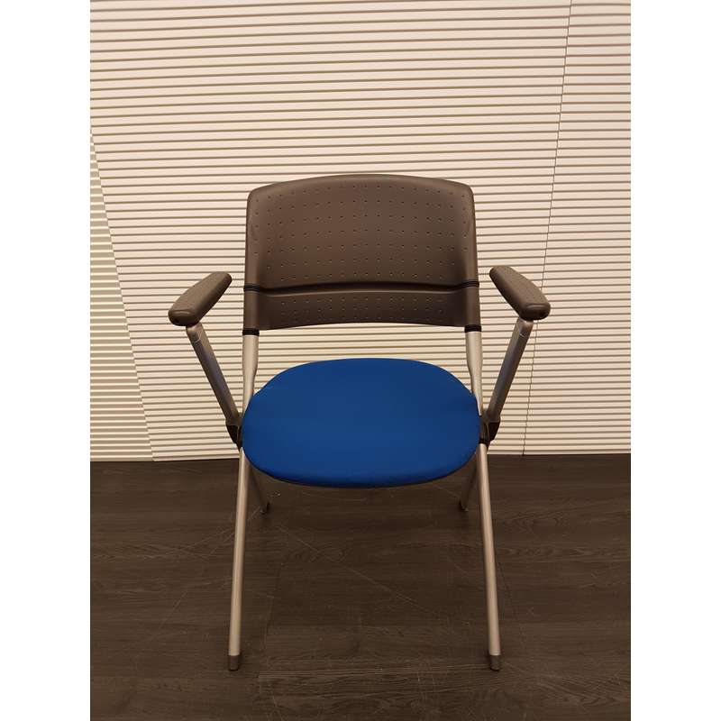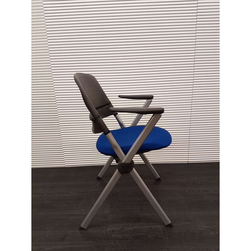 Inklapbare conferentiestoel, blauwe stof, kunststof rug en armleuning, aluminium 4poot