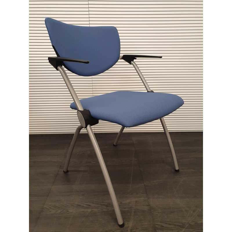 Haworth Comforto conferentiestoel, lichtblauwe stof, aluminium 4poot