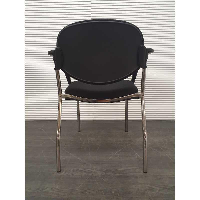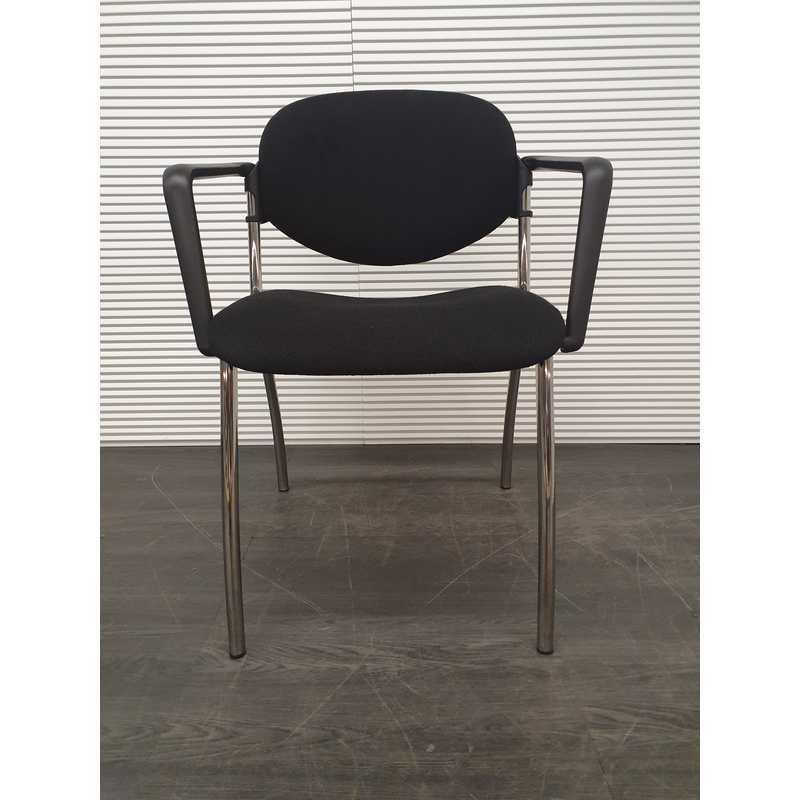 Vergaderstoel, zwarte stof, kunststof afwerking armleuning, chroom 4 poot