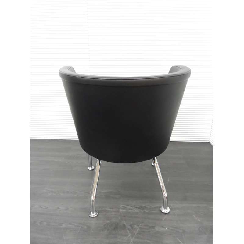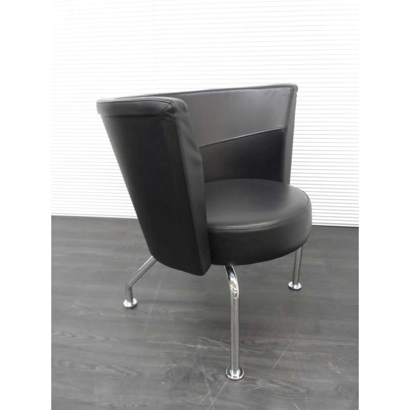 Lammhults Felix fauteuil, rond met zwart leder en chroom 4 poot