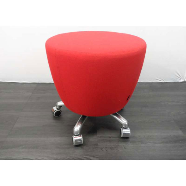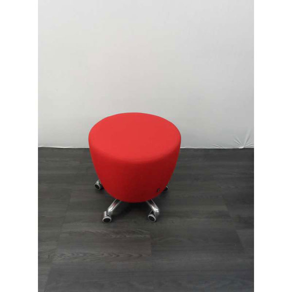 Vepa poef, verrijdbaar, rode stof wolmix met chroom voetjes met wielen.