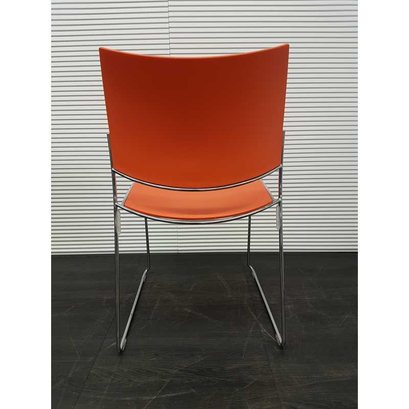 Casala Curvy kantinestoel, draadframe chroom met oranje kunststof zitting en rug en stapelbaar
