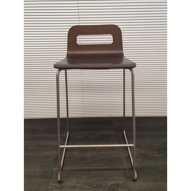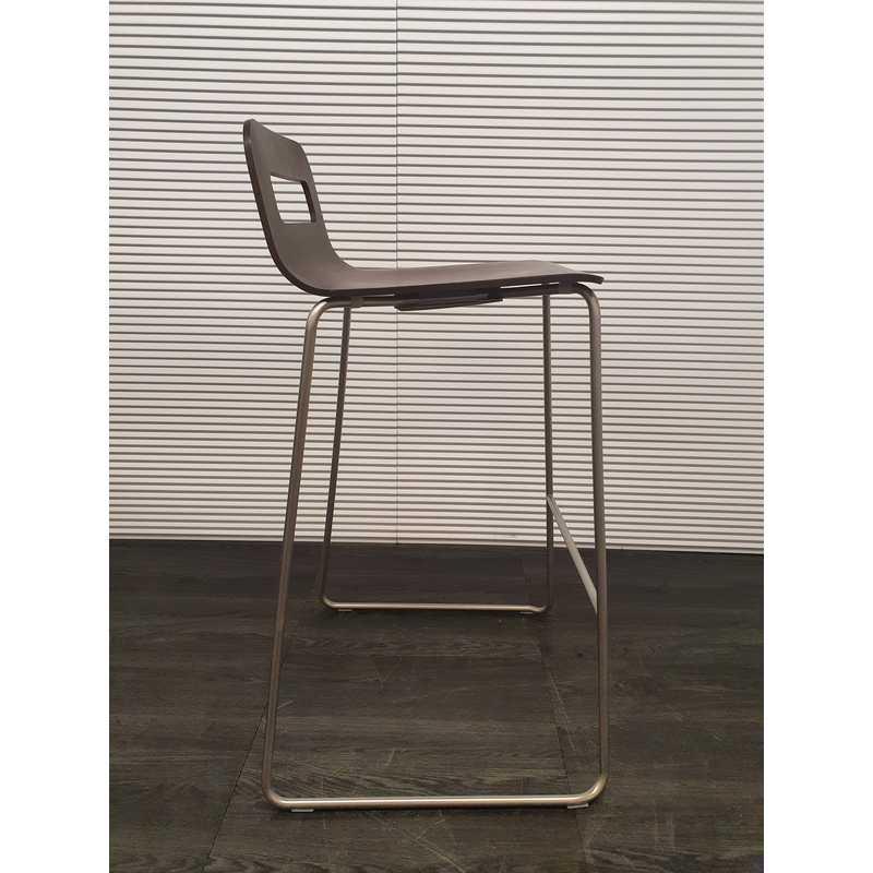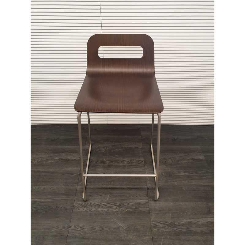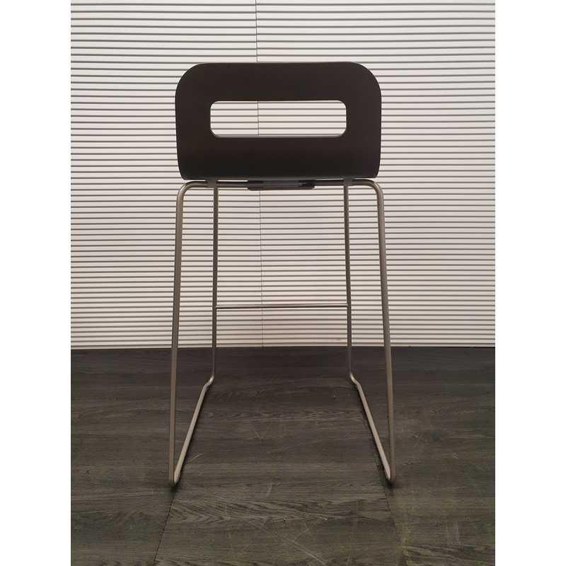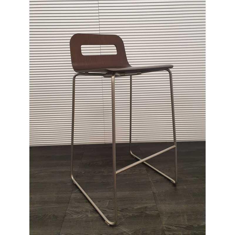 La Palma barkruk met donkerbruin triplex zitting en mat zilvergrijs onderstel
