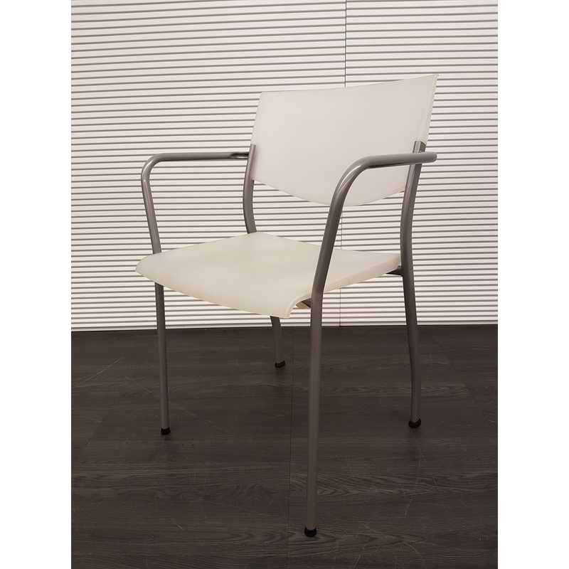Ahrend, kantinestoel, met armleuning wit transparant kunststof, zilvergrijs 4poot