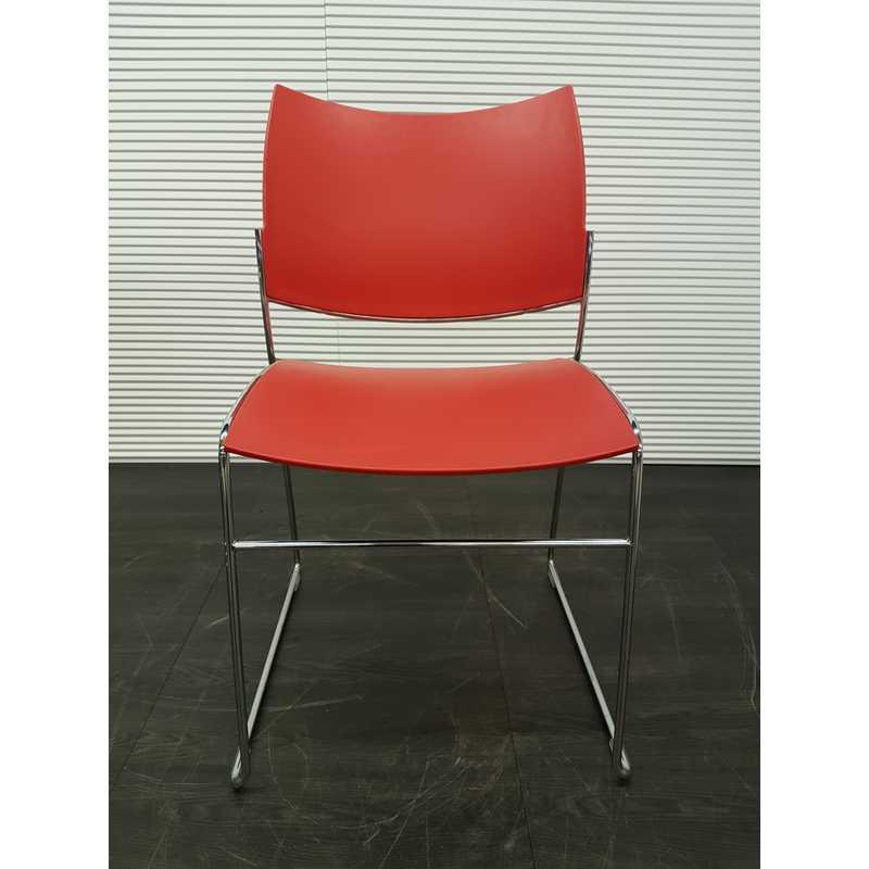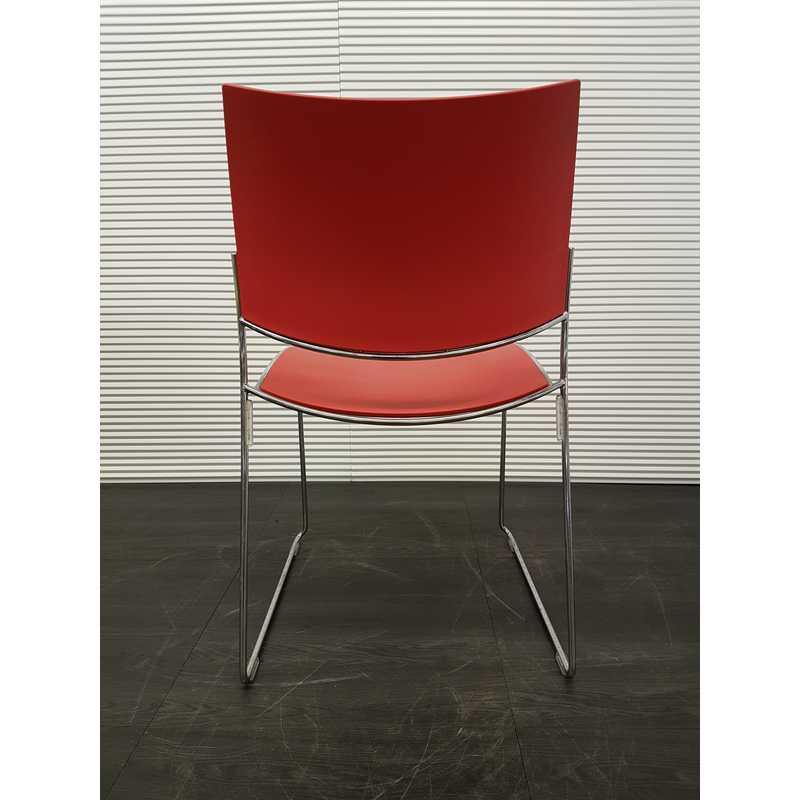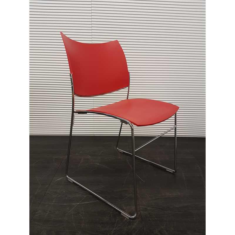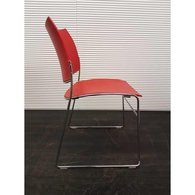 Casala Curvy kantinestoel, draadframe chroom met rood kunststof zitting en rug en stapelbaar