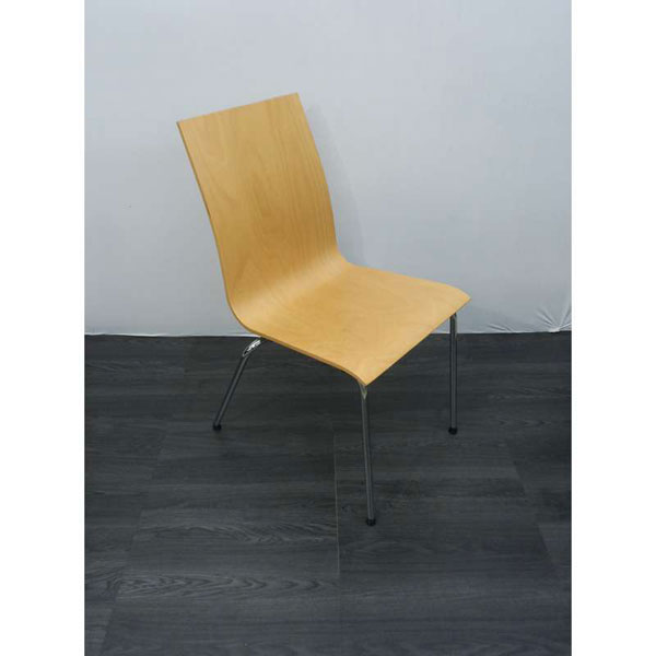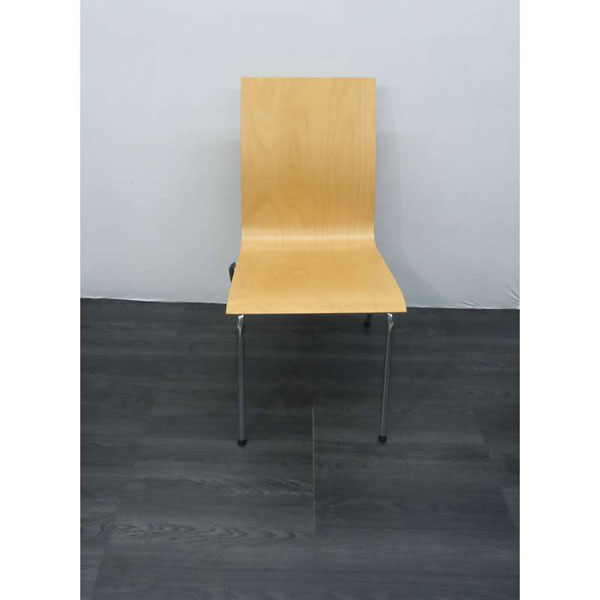 Deze nette kantinestoel beschikt over vier chrome poten en een houten zitting.ÿ