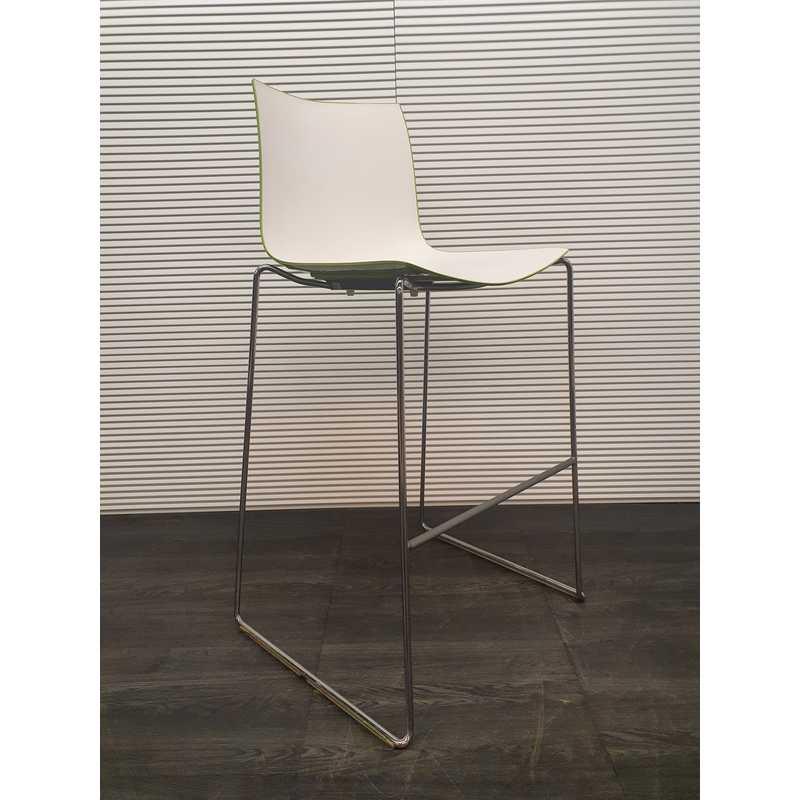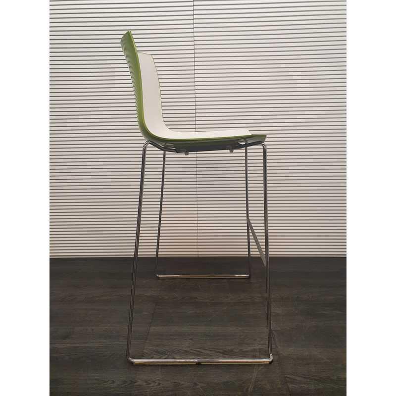Arper Catifa 46, groen gloss kunststof, zitting mat wit chroom draadframe