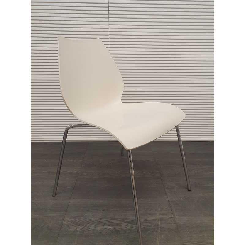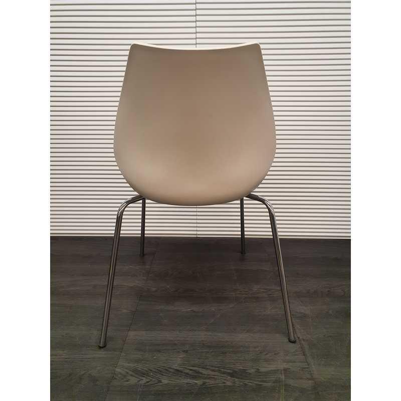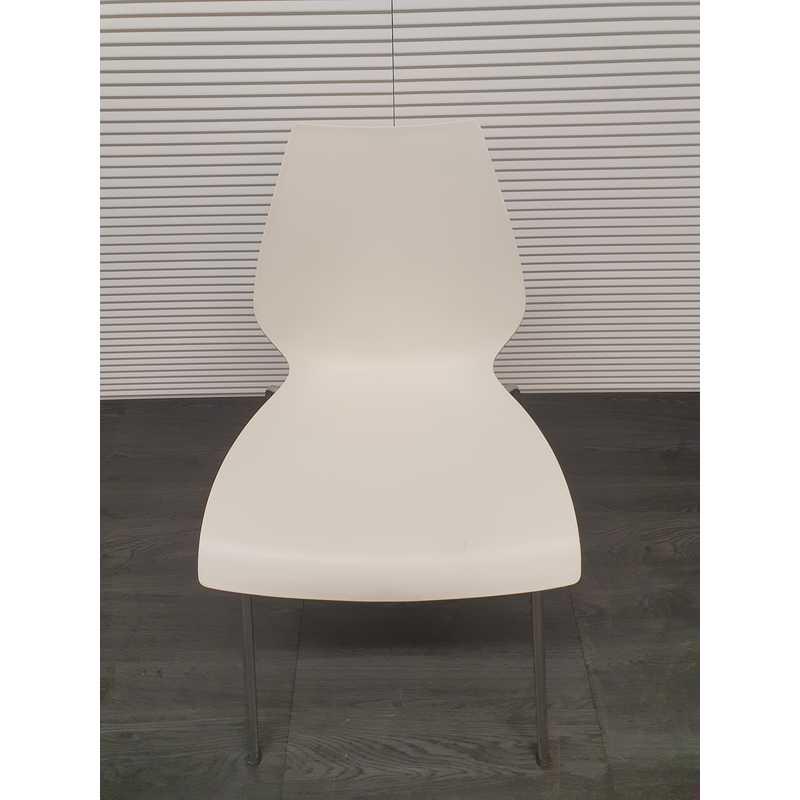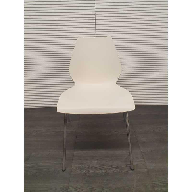 De Kartell Maui is een nette kantine stoel met een witte zitting en een chrome frame.