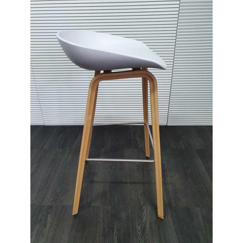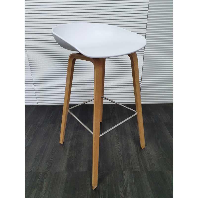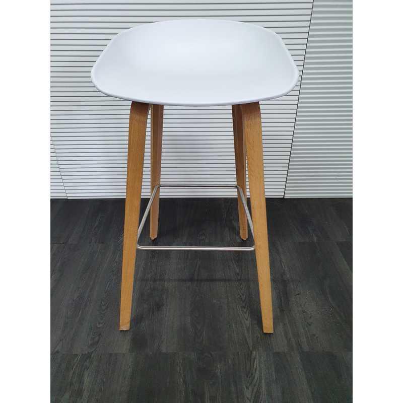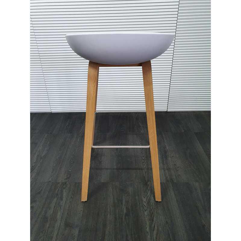 Hay barkruk licht eiken met wit kunststof kuipzitting hoogte 75cm voor aan blad van 100cm hoogte