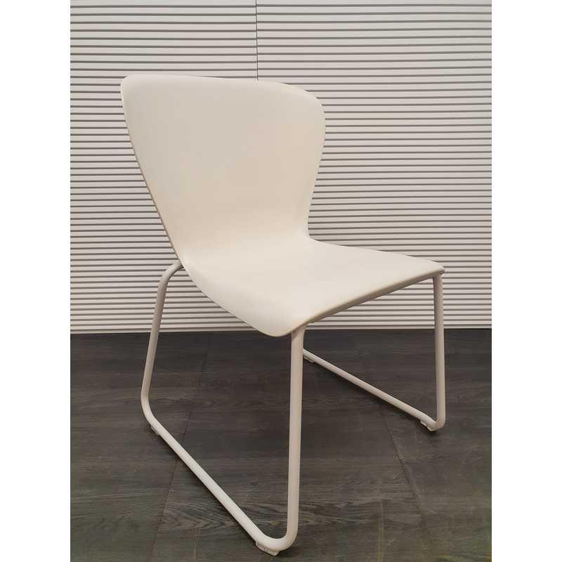 Steelcase, kantinestoel, wit kunststof zitting, wit slede