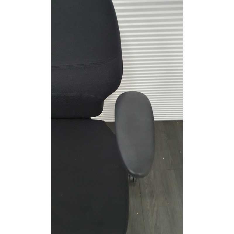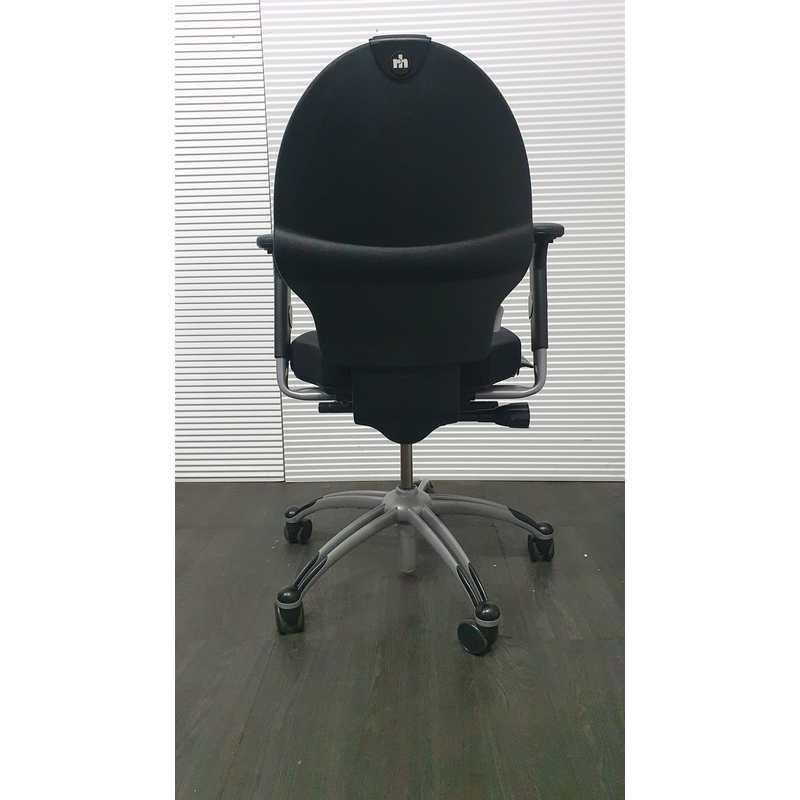 RH Logic Extend 120 bureaustoel, zwarte stof met soft pad armleggers en zilvergrijs split aluminium voetenkruis.