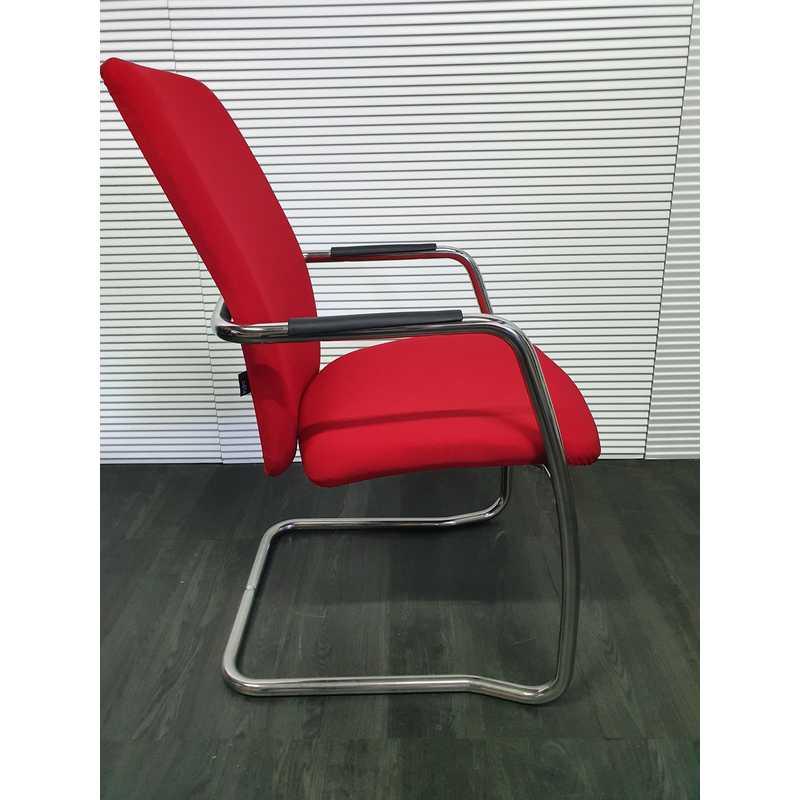 Beta vergaderstoel donkerrood gestoffeerd met hoge rug, chroom slede