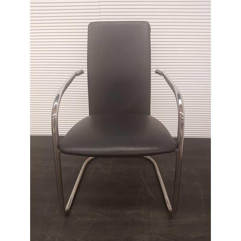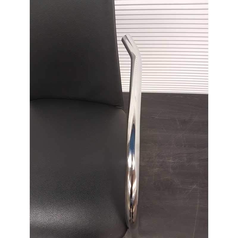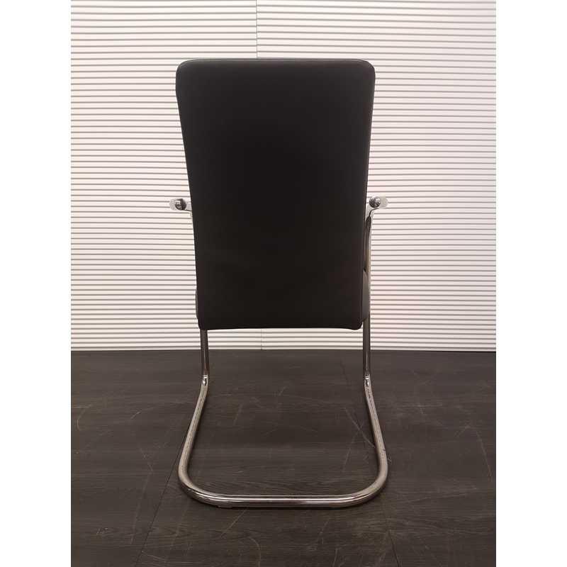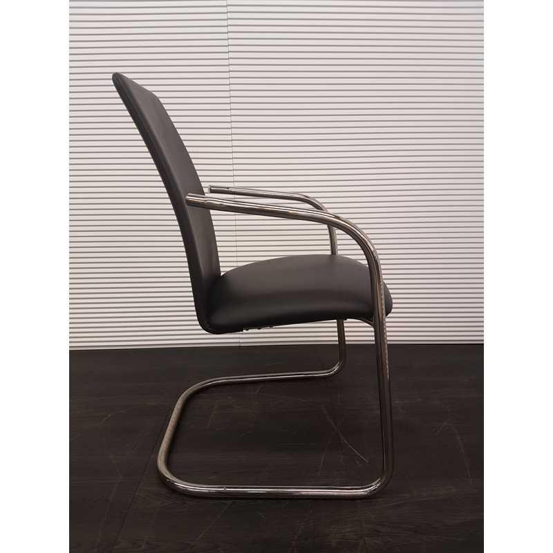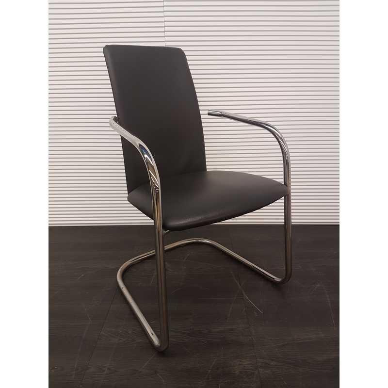 Effezeta vergaderstoel, zwart leder met chroom armleuning, chroom slede