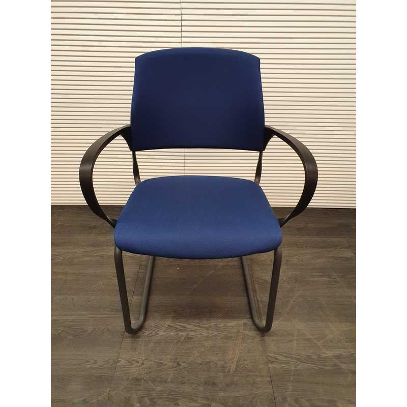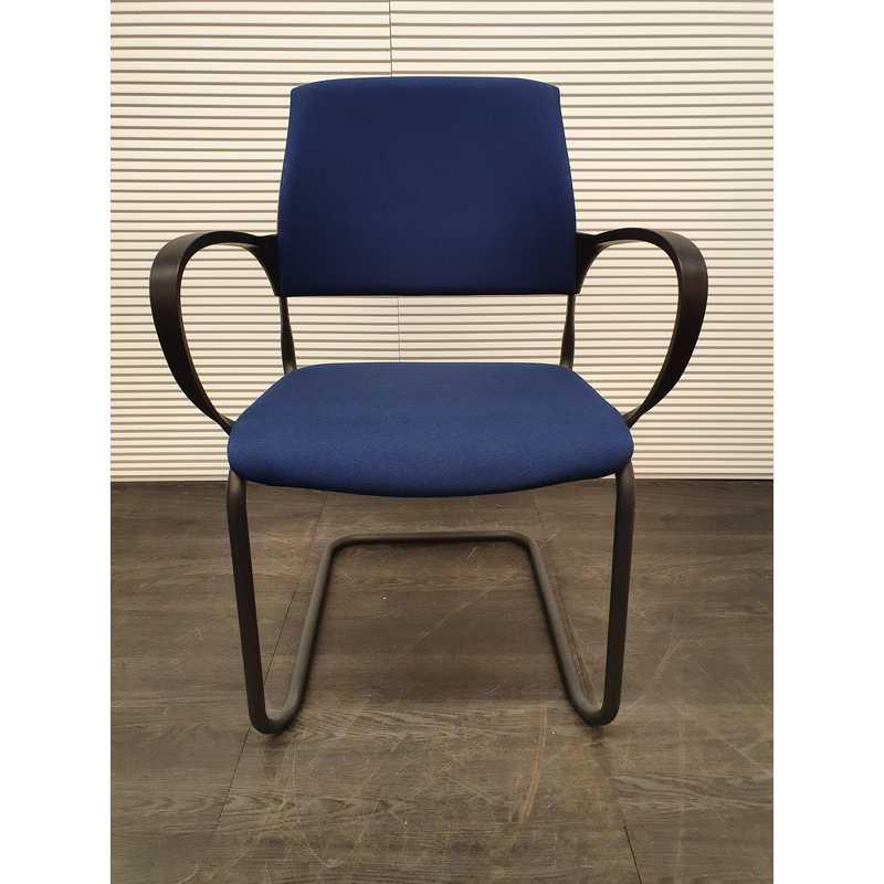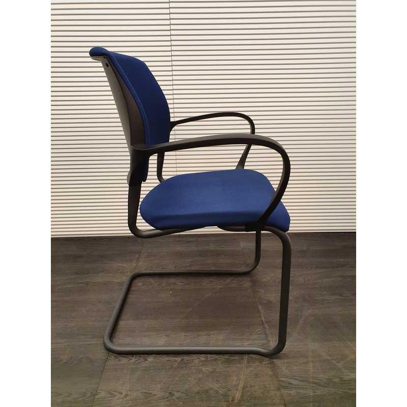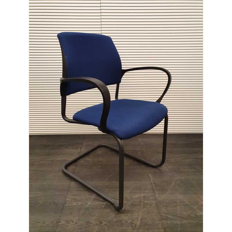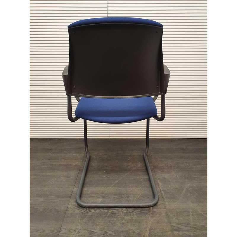 Drabert Filio vergaderstoel, donkerblauwe stof, rugleuning achterkant en armleuning kunststof, mat zwart slede
