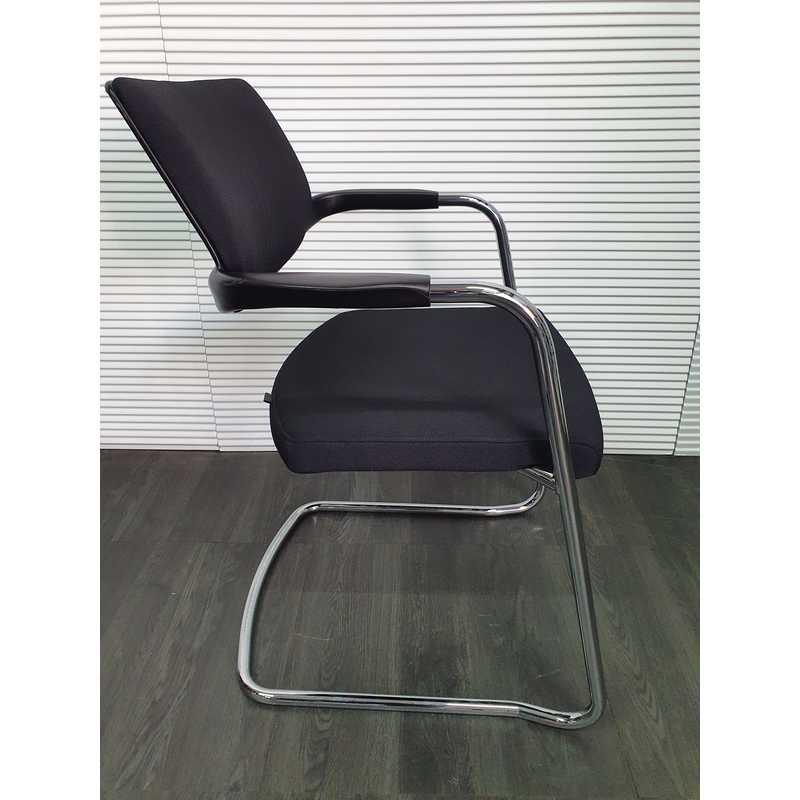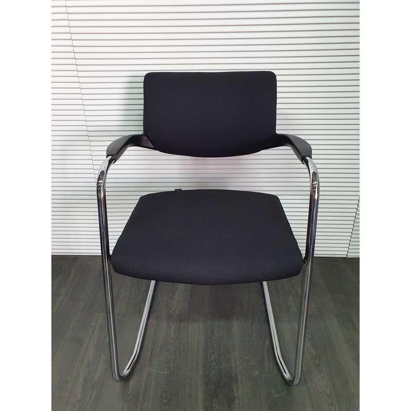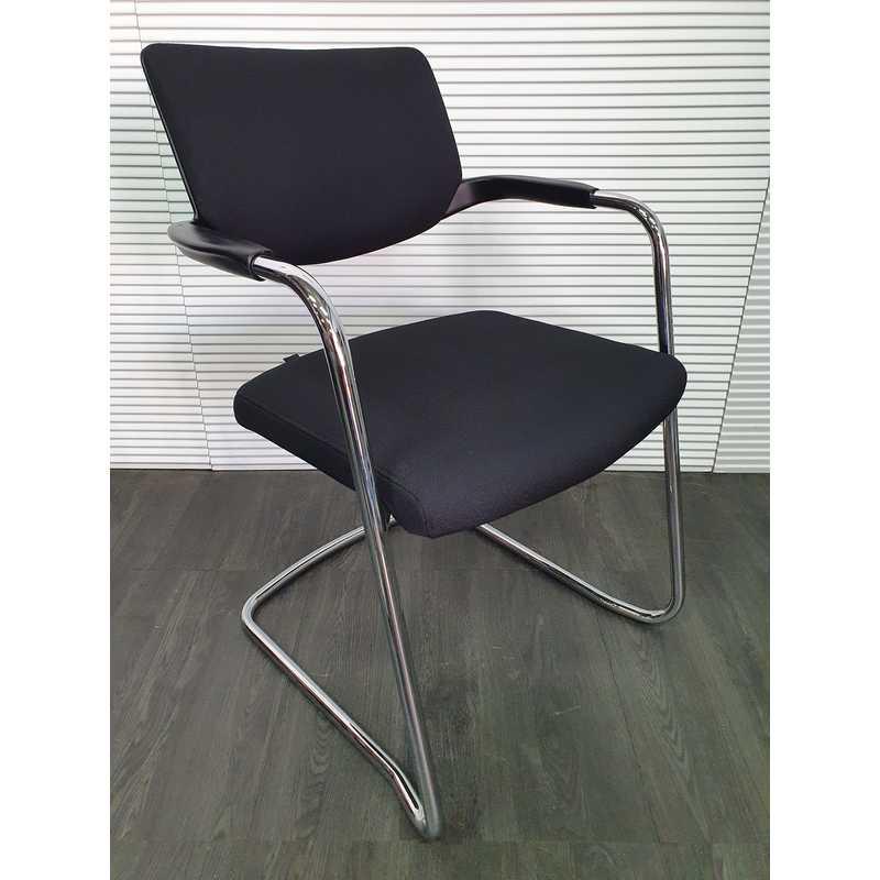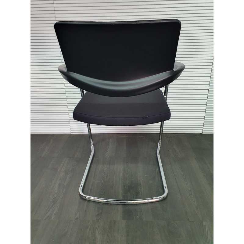 Interstuhl 517N vergaderstoel, zwart gestoffeerd, chroom slede met kunststof armlegger