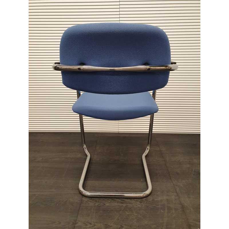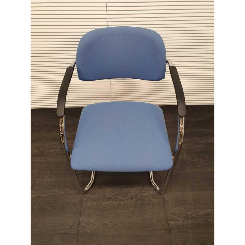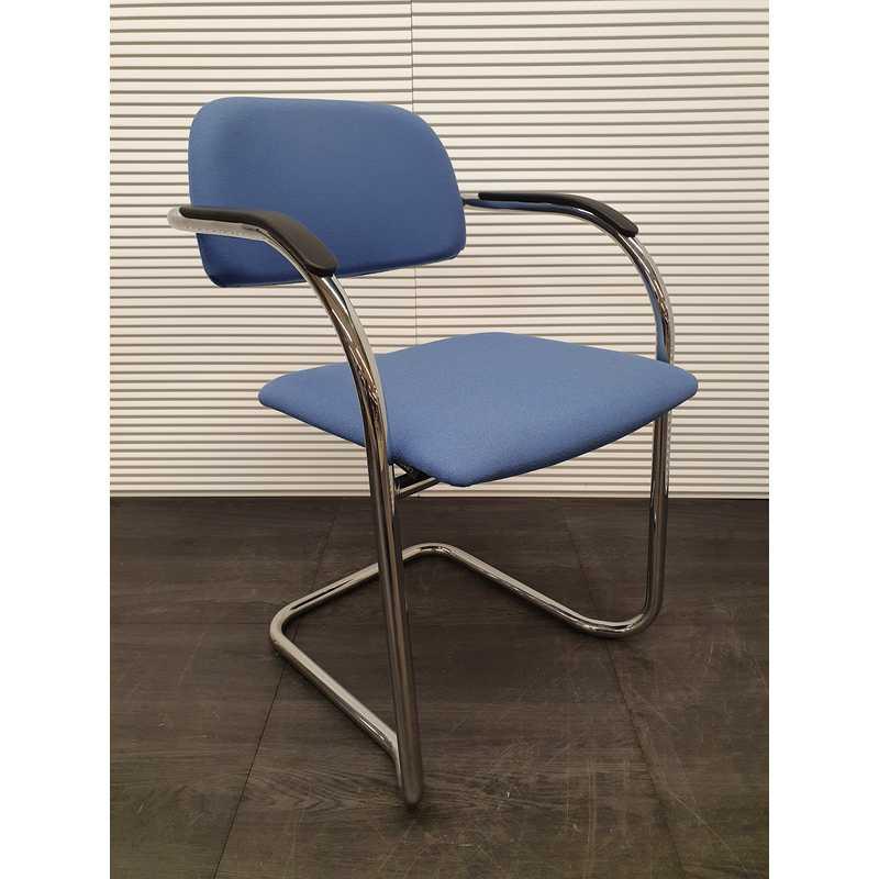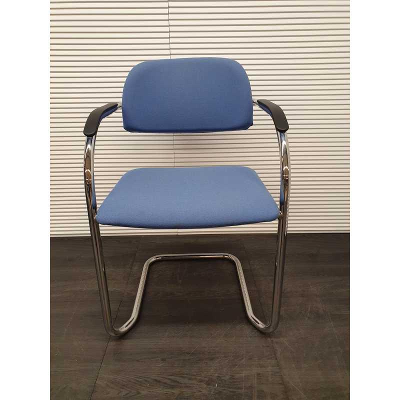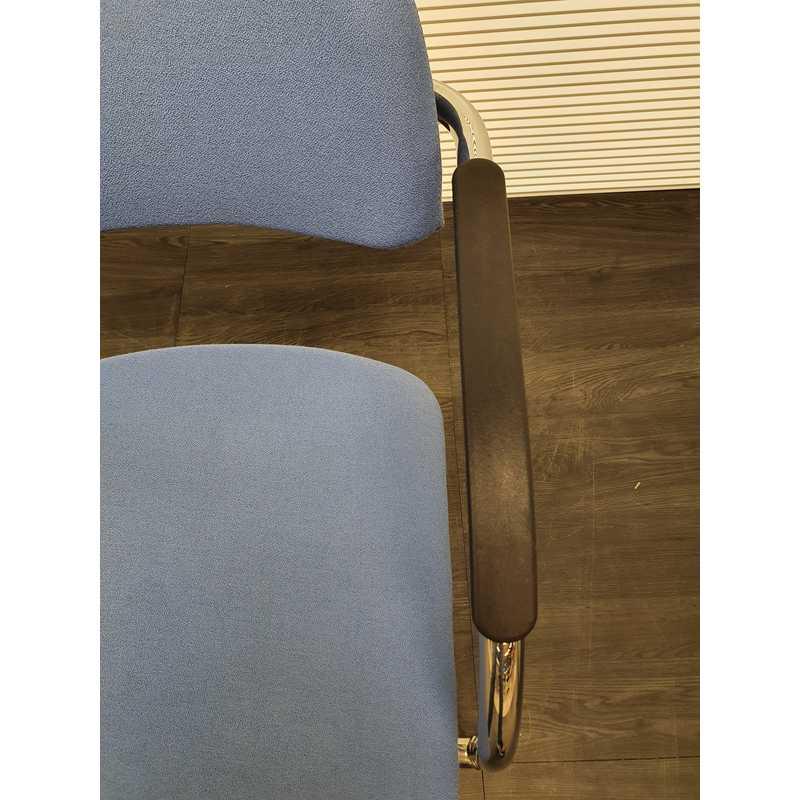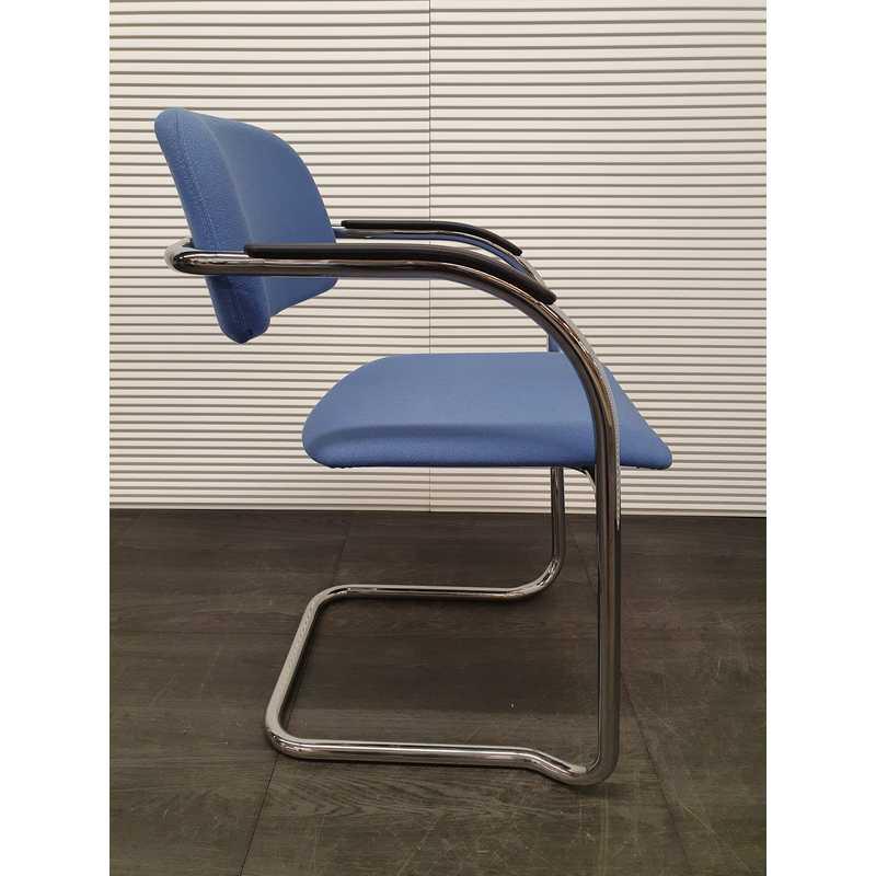 Lande vergaderstoel, lichtblauwe stof, kunststof afwerking armleuning,chroom slede