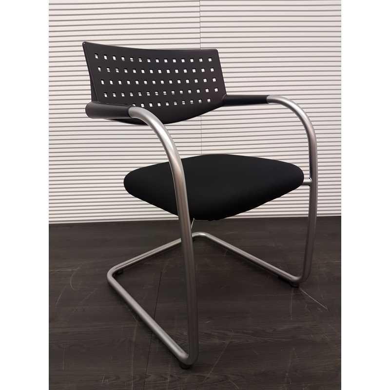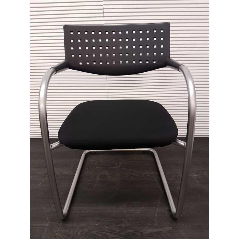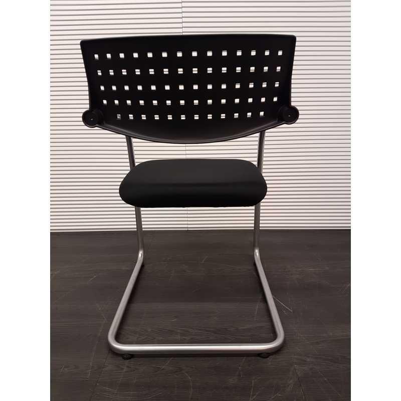 Vitra visavis vergaderstoel, alu slede, zwarte stof en kunststof rug, kunststof afwerking armleuning, nieuw gestoffeerd!