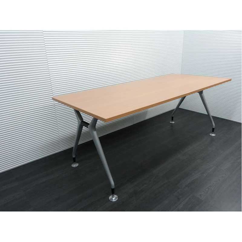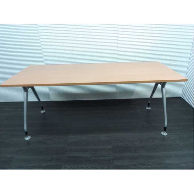 König & Neurath vergadertafel, 180x100cm, chroom onderstel met stelvoetjes en beuken blad