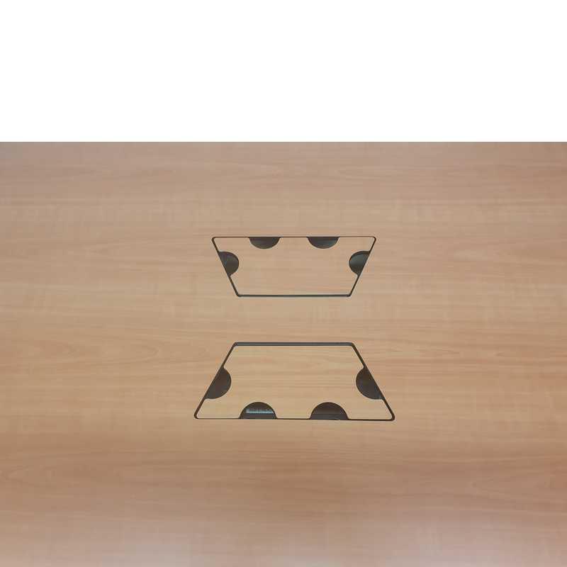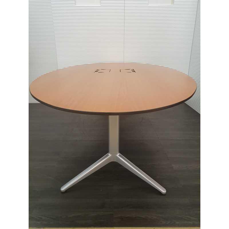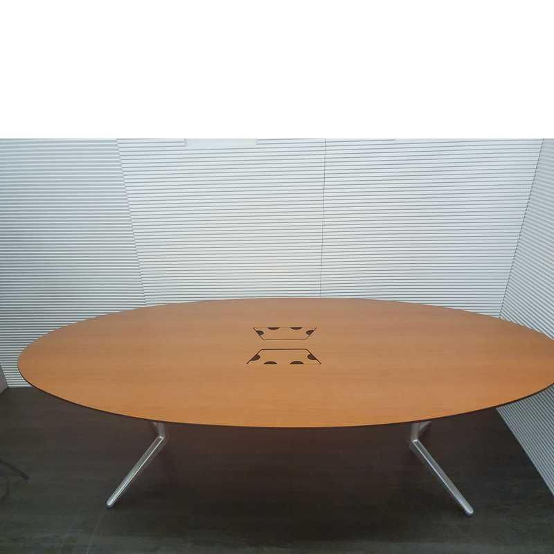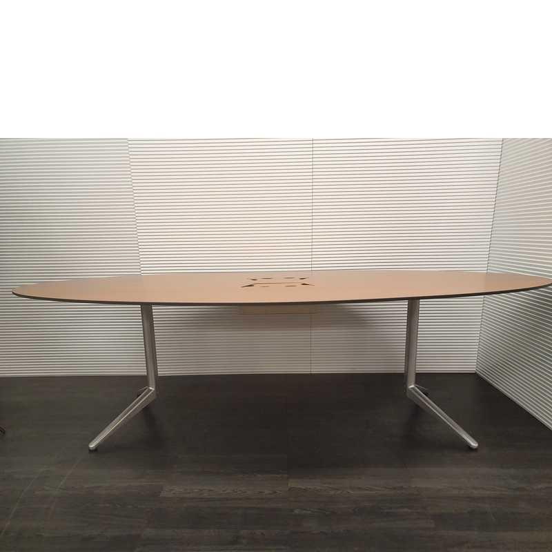 Ahrend Mehes vergadertafel, 260x130x75cm, zilvergrijs 2 poot met donker beuken volkern blad
