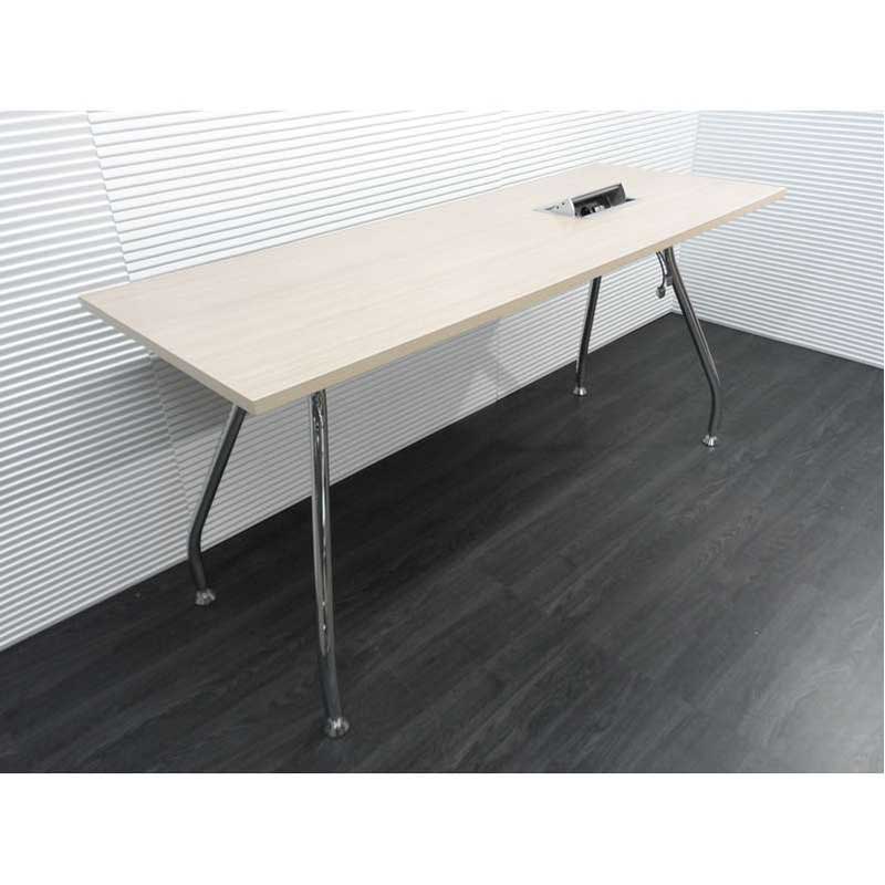 Vepa vergadertafel 160x60cm, chroom 4poot met stelvoetjes en licht eiken blad met powerunit